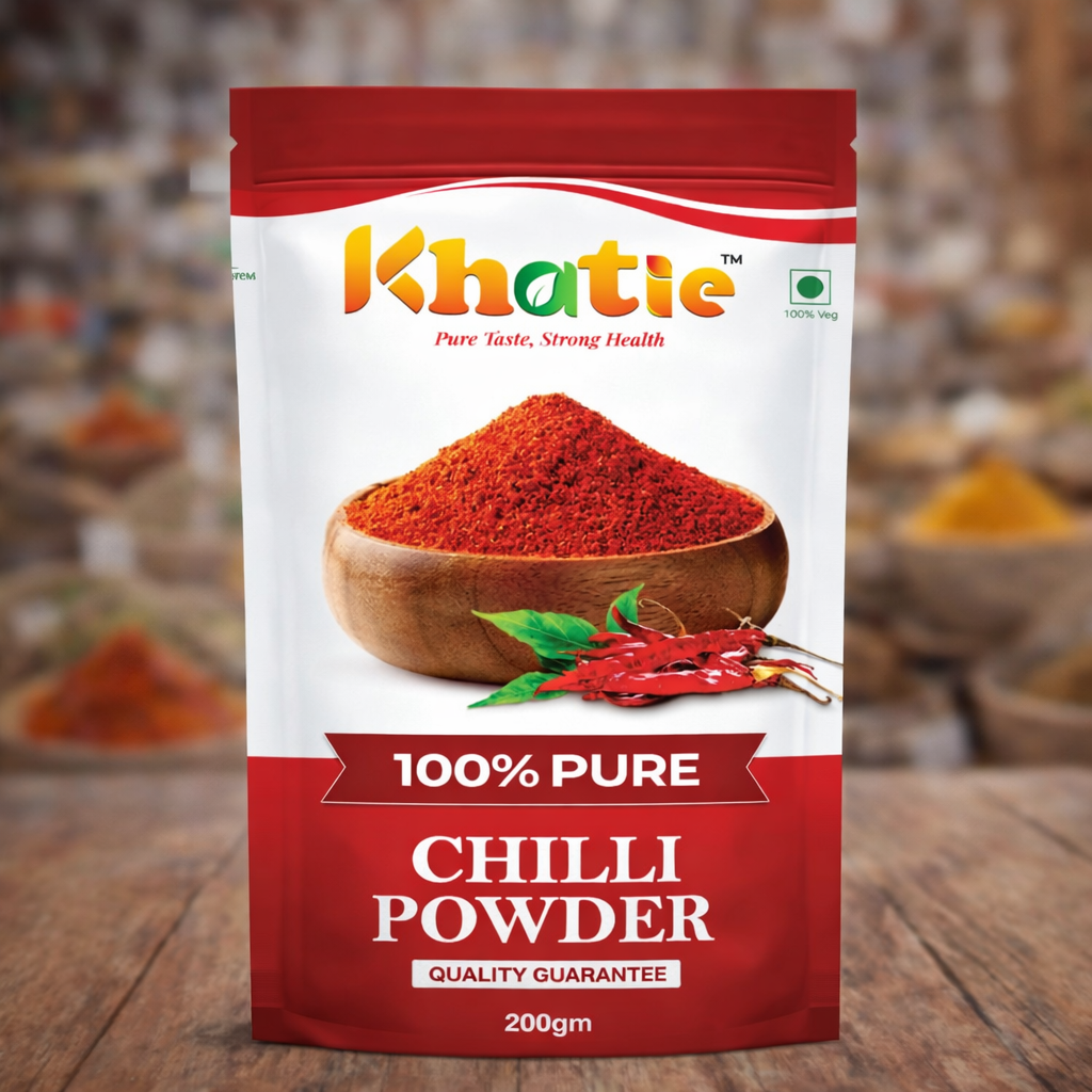 Khatie 100% Pure Chilli Powder is made from carefully selected, sun-dried red chillies to deliver natural colour, rich aroma, and authentic heat. Finely ground and free from additives or artificial colours, it enhances every dish with bold flavour. A perfect choice for everyday cooking, bringing purity, freshness, and traditional taste to your kitchen.